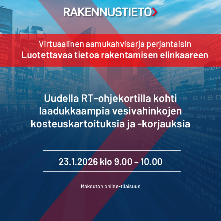 Tervetuloa tutustumaan hyvään vesivahinkojen kosteuskartoitustapaan. Puhumme myös vesivahingon puutteellisten kosteuskartoitusten aiheuttamista ongelmista käytännössä. Tervetuloa jakamaan ajatuksia ja kokemuksia aiheesta kanssamme. Tallennamme webinaarin ja voit halutessasi tilata pelkän tallenteen. Lue lisää ja ilmoittaudu