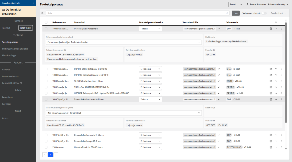 ”Vaikka rakennustuoteluettelon pakollisuus merkitsee alan toimijoille suurta muutosta, se avaa samalla mahdollisuuden aiempaa parempaan tiedonhallintaan, vertailtavuuteen ja vastuullisuuteen, etenkin kun sen toteuttaa luotettavalla työkalulla”, Rantanen toteaa.